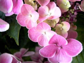アジサイがなんとなく濁ったような花色になってしまう時には、青花種はミョウバンで酸性土にし、桃色花は苦土石灰を混ぜてアルカリ性にすると花色が良くなる。