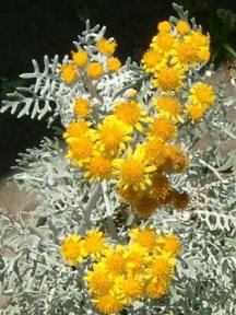 シロタエギクは花を咲かせると、株の老化や枯死につながるので、花芽は摘み取るようにします。