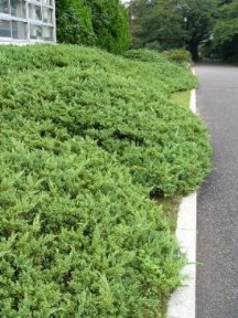 剪定やお手入れ:ハイビャクシンは自由に横枝を伸ばすので、強い刈り込みは避けるようにする。